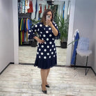 Step into effortless elegance with a timeless polka dot design made for modern days and special nights. The flowing pleats create a flattering shape that moves beautifully with you. Designed for comfort and style, this dress delivers a polished look that feels light, feminine, and confident.