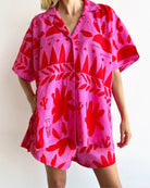 The perfect blend of comfort and effortless style. Featuring a flattering short-sleeve top with a classic collar and a relaxed-fit bottom, this set is designed for versatile, all-day wear. Crafted from lightweight, breathable fabric, it keeps you feeling cool and fresh even on the warmest days. Whether you're heading to brunch, a holiday getaway, or a casual outing, this set ensures you always look stylish with minimal effort.