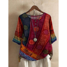 Bring colour and individuality to your wardrobe with the MARISTELLE – a breathable, lightweight top that combines all-day comfort with artistic flair. Its vibrant patchwork-inspired design, flattering fit, and easy-care fabric make it a perfect choice for both everyday wear and travel.